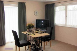| Beschreibung der Ausstattung | Kombiniertes Wohn-/Schlafzimmer: Bett mit Liegefläche 140x200 cm, Kleiderschrank, Wäscheschrank, Truhe, Bettwäsche inklusive. Esstisch im Küchenbereich integriert. Bad mit Fenster und Badewanne. Gute Einbauküche, extratiefe Arbeitsplatte, Esstisch mit 2 Stühlen, Kühlschrank mit integriertem Gefrierfach, Mikrowelle, 2-Plattenherd, Kaffeemaschine, Wasserkocher, mit Geschirr, gut ausgestattet. Waschmaschine und Trockner im Keller. Technische Ausstattung: Smart Hub TV, DVD, Radio, CD-Player, Internetzugang. Bodenbelag: Teppichboden im Wohnbereich. Fliesenboden im Bad. Möblierung: neue Möbel mit restauriertem, antikem Mobiliar kombiniert. Specials: Reinigungsservice, Highspeed Internetzugang, Klima-Komfortsystem, helle Wohnung. |
